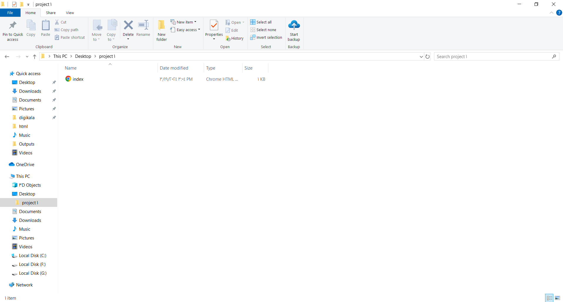 - روی سند HTML که به شکل آیکون مرورگر شده، کلیلک می کنیم تا نتیجه را مشاهده کنیم.